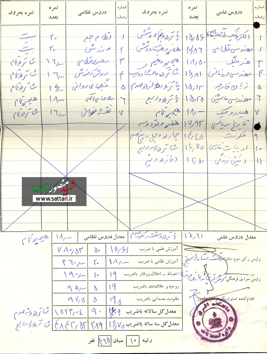 برای نخستین بار در پایگاه اطلاع‌رسانی شهید ستاری، کارنامه‌های تحصیلی شهید منصور ستاری منتشر می‌شود: