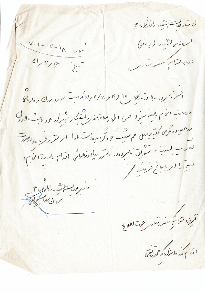 این تلاش از چشمان فرمانده نیز دور نماند و با نگارش نامه‌ای، زمینه قدردانی از این تلاش بی‌شائبه ستاری جوان را فراهم کرد. تصویر این درخوایت تشویق را در ادامه می‌بینیم: