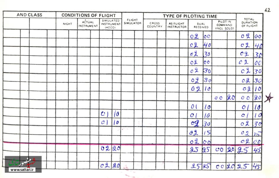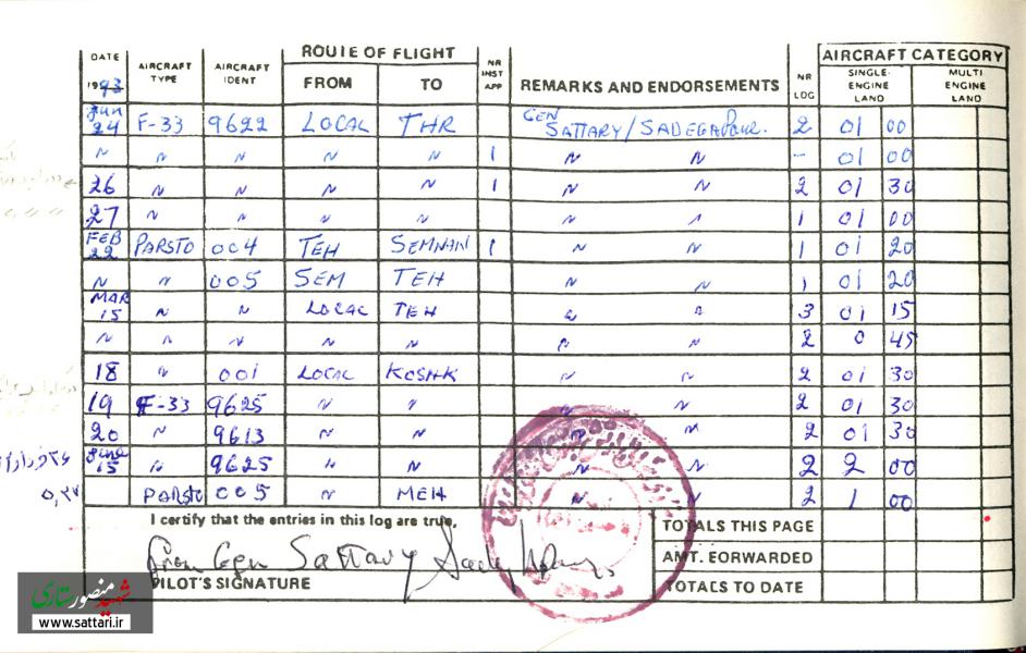 در ادامه، تصاویری از دفتر و رکوردهای پرواز امیر سرلشکر منصور ستاری را می‌بینیم:
