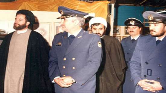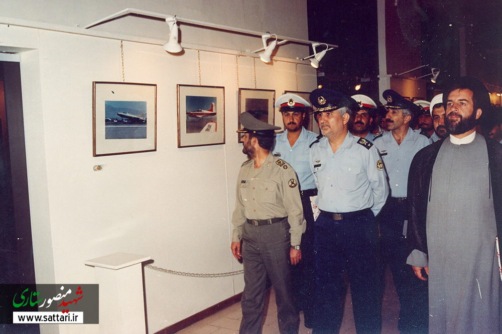 تیمسار منصور ستاری فرمانده نیروی هوایی و حجتالاسلام شهیدی در بازدید نمایشگاه فرهنگی عقیدتی سیاسی نهاجا 1372